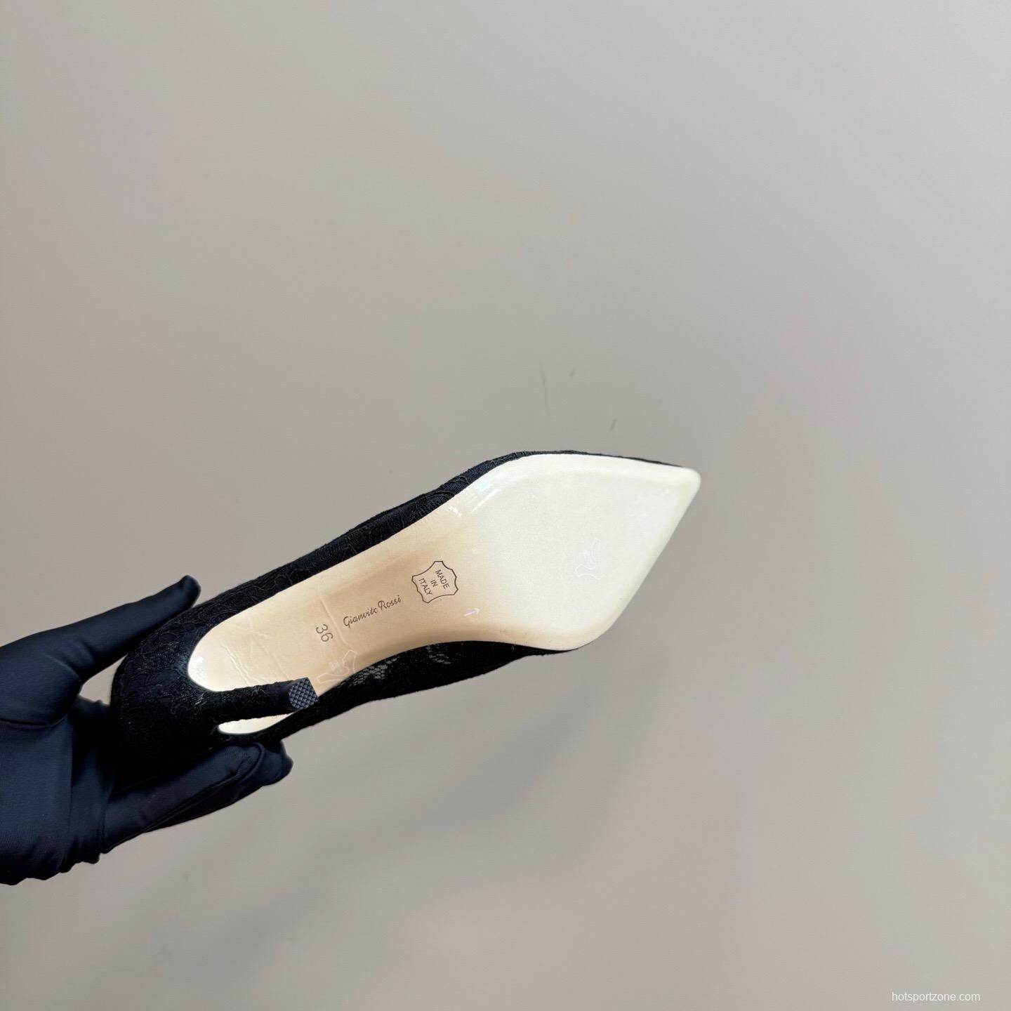 The 2025 Women Gianvito Rossi Black Lace Leather High Heel combines elegant lace mesh design with premium craftsmanship, ideal for sophisticated evening events. The KFY00280 features a pointed toe and an open-back style, offering both mystery and playful charm. This luxurious version delivers an exquisite blend of style and comfort for those who wish to stand out in any crowd.