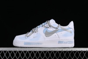 Nike Air Force 1 '07 Mid Casual Sneakers in White/Grey/Black with Hand-Painted Cracked Swoosh Shadow Detail - CW2289-111